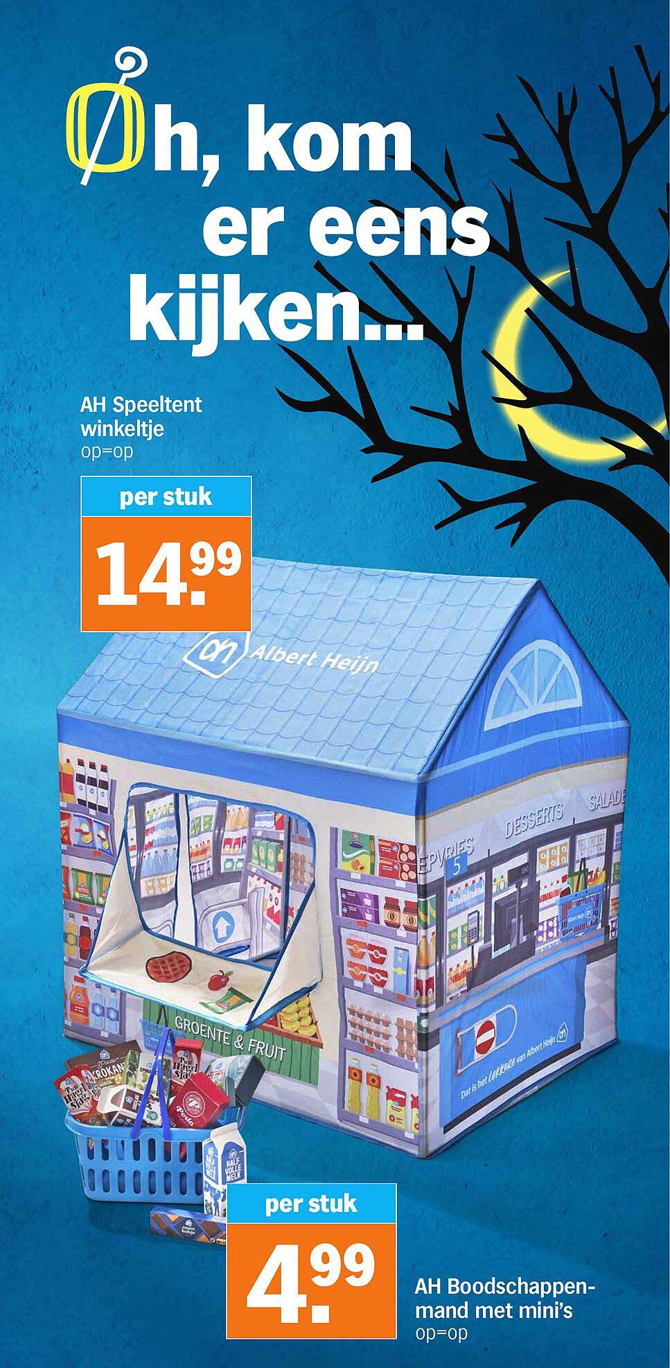 Bekijk nu de AH Speeltent winkeltje aanbieding in de Albert Heijn folder. Deze aanbieding is geldig van 18-11-2024 tot en met 24-11-2024.