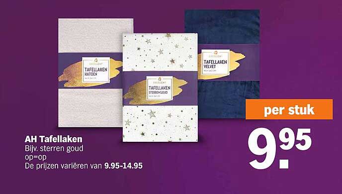 Bekijk de Ah Tafellaken aanbieding bij Albert Heijn! Deze fantastische aanbieding is nu beschikbaar in de nieuwste Albert Heijn folder. Profiteer van deze kans en bespaar flink op je aankoop.