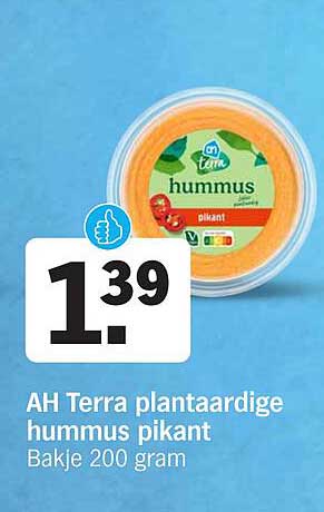 Ah Terra Plantaardige Hummus Pikant aanbieding bij Albert Heijn