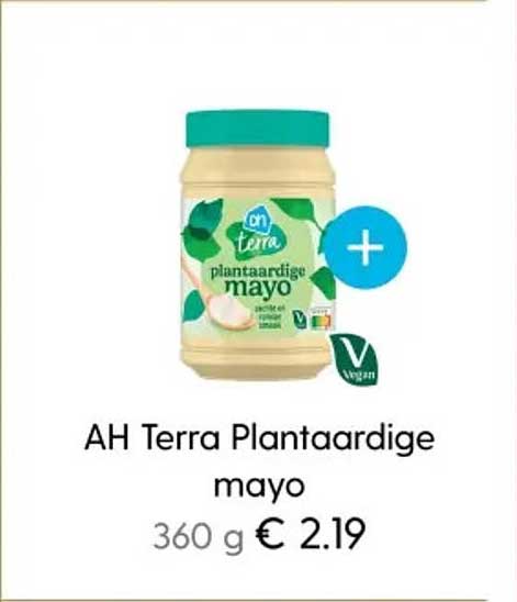 Bekijk de Ah Terra Plantaardige Mayo aanbieding bij Albert Heijn! Deze fantastische aanbieding is nu beschikbaar in de nieuwste Albert Heijn folder. Profiteer van deze kans en bespaar flink op je aankoop.