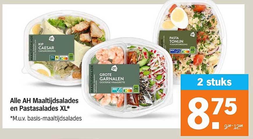 Bekijk nu de Alle AH Maaltijdsalades en Pastasalades XL* aanbieding in de Albert Heijn folder. Deze aanbieding is geldig van 08-09-2025 tot en met 13-09-2025.