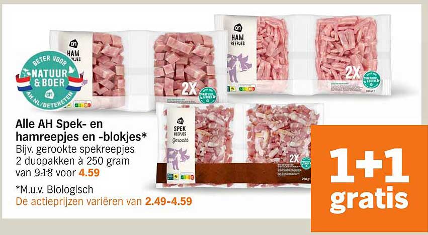 Bekijk de Alle Ah Spek- En Hamreepjes En -Blokjes* aanbieding bij Albert Heijn! Deze fantastische aanbieding is nu beschikbaar in de nieuwste Albert Heijn folder. Profiteer van deze kans en bespaar flink op je aankoop.