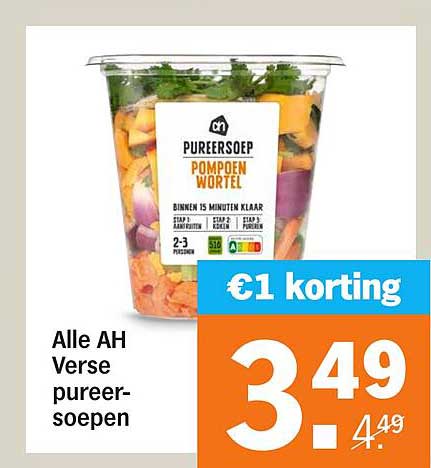 Bekijk nu de Alle AH Verse puurersoepen aanbieding in de Albert Heijn folder. Deze aanbieding is geldig van 13-10-2025 tot en met 19-10-2025.