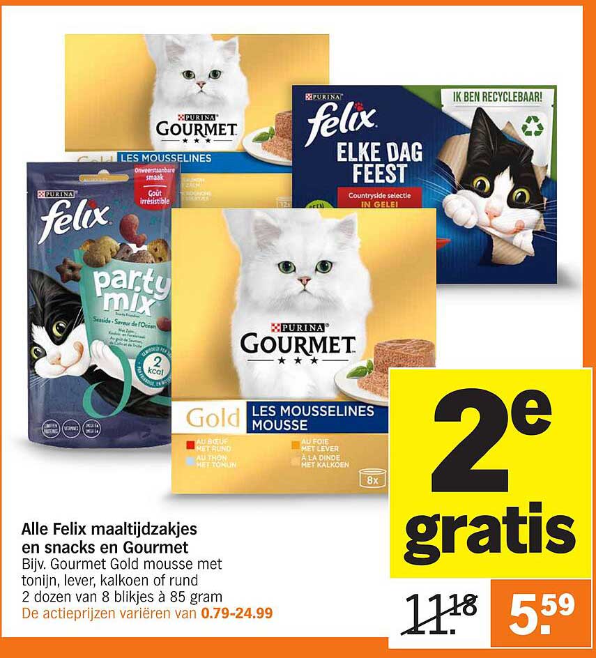 Bekijk nu de Alle Felix maaltijdzakjes en snacks en Gourmet aanbieding in de Albert Heijn folder. Deze aanbieding is geldig van 03-03-2025 tot en met 09-03-2025.