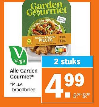 Bekijk de Alle Garden Gourmet* aanbieding bij Albert Heijn! Deze fantastische aanbieding is nu beschikbaar in de nieuwste Albert Heijn folder. Profiteer van deze kans en bespaar flink op je aankoop.