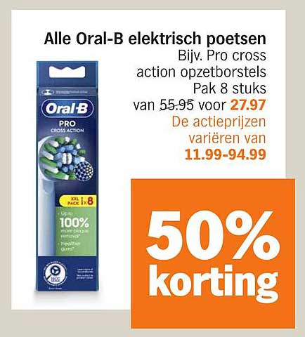 Ben je op zoek naar de beste manier om je mondgezondheid te verbeteren? Kijk dan niet verder! Op deze pagina vind je een geweldige aanbieding voor alle Oral-B elektrisch poetsen, inclusief de populaire Pro Cross Action opzetborstels. Deze deals zijn perfect voor iedereen die waarde hecht aan een stralende glimlach en optimale mondverzorging. Met een fikse korting van 50% sinds deze aanbieding geldig is van 2025-07-07 tot en met 2025-07-13, is er geen betere tijd om te investeren in je tandheelkundige welzijn.