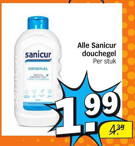 Met een korting van meer dan 50% is dit de perfecte gelegenheid om je favoriete douchegel in te slaan. Normaal betaal je €4,39 voor de Sanicur douchegel, maar nu kan je deze voor slechts €1,99 kopen. Een geweldige kans om te besparen terwijl je jezelf verwent!