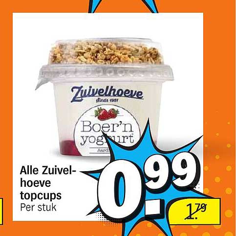 Bekijk de Alle Zuivelhoeve Topcups aanbieding bij Albert Heijn! Deze fantastische aanbieding is nu beschikbaar in de nieuwste Albert Heijn folder. Profiteer van deze kans en bespaar flink op je aankoop.