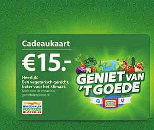 Ben jij op zoek naar het perfecte cadeau voor een vriend of familielid? Met de cadeaukaart van €15,- van Albert Heijn geef je iemand de mogelijkheid om zelf hun favoriete voedingsmiddelen te kiezen. Of ze nu dol zijn op vers fruit, heerlijke groenten of unieke delicatessen, met deze kaart zit je altijd goed!