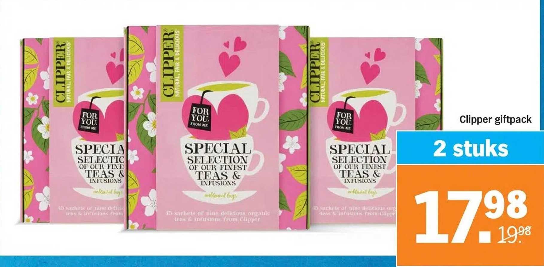 Bekijk nu de Clipper giftpack aanbieding in de Albert Heijn folder. Deze aanbieding is geldig van 02-06-2025 tot en met 22-06-2025.