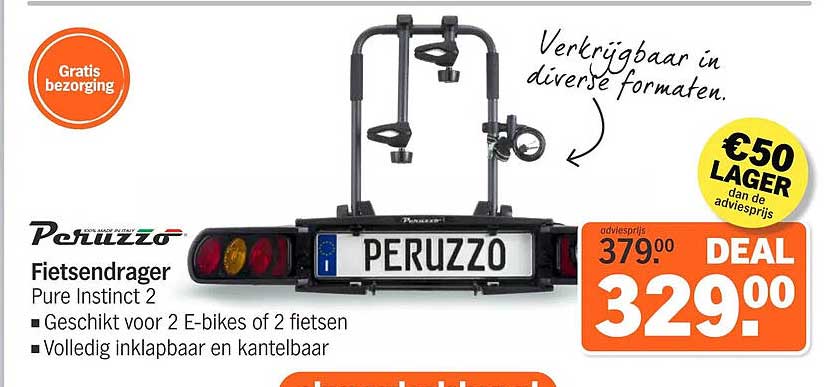 Maak je klaar voor avontuur met de fietsdrager Pure Instinct 2 van Peruzzo! Deze aanbieding is perfect voor iedereen die graag met de fiets op pad gaat, of je nu een dagje naar de natuur gaat of een langere fietstocht plant. Met deze fietsdrager kun je eenvoudig twee E-bikes of twee fietsen meenemen, zodat je geen enkele rit hoeft te missen. Nu voor een geweldige prijs van €329, dat is €50 lager dan de adviesprijs!