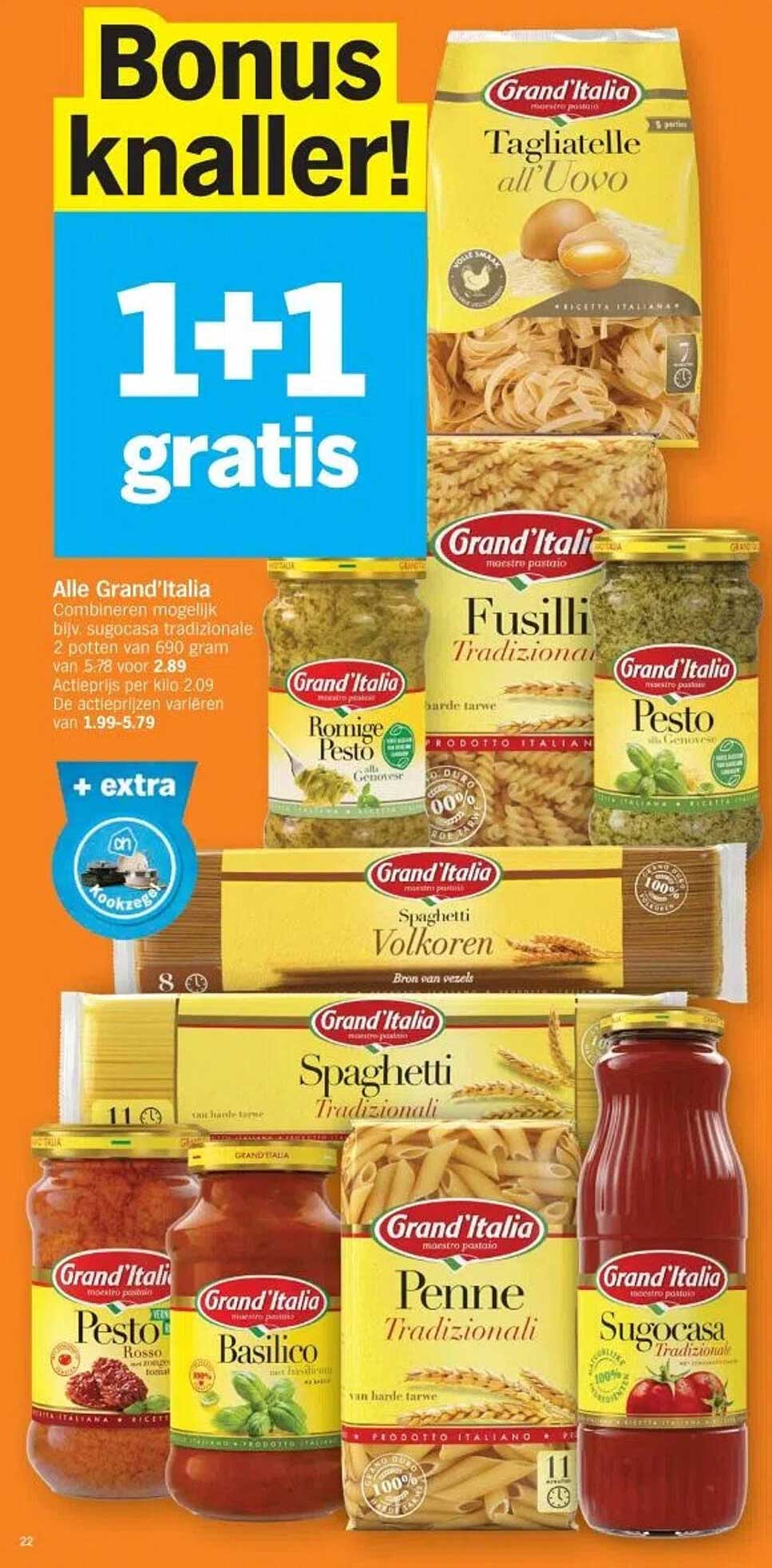 Bekijk nu de Grand'Italia Tagilatelle all'Uovo aanbieding in de Albert Heijn folder. Deze aanbieding is geldig van 17-03-2025 tot en met 23-03-2025.