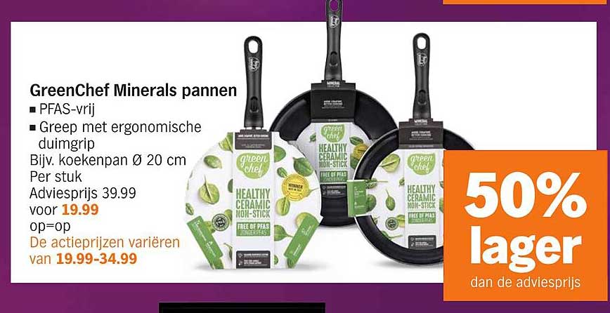 Bekijk de Greenchef Minerals Pannen aanbieding bij Albert Heijn! Deze fantastische aanbieding is nu beschikbaar in de nieuwste Albert Heijn folder. Profiteer van deze kans en bespaar flink op je aankoop.