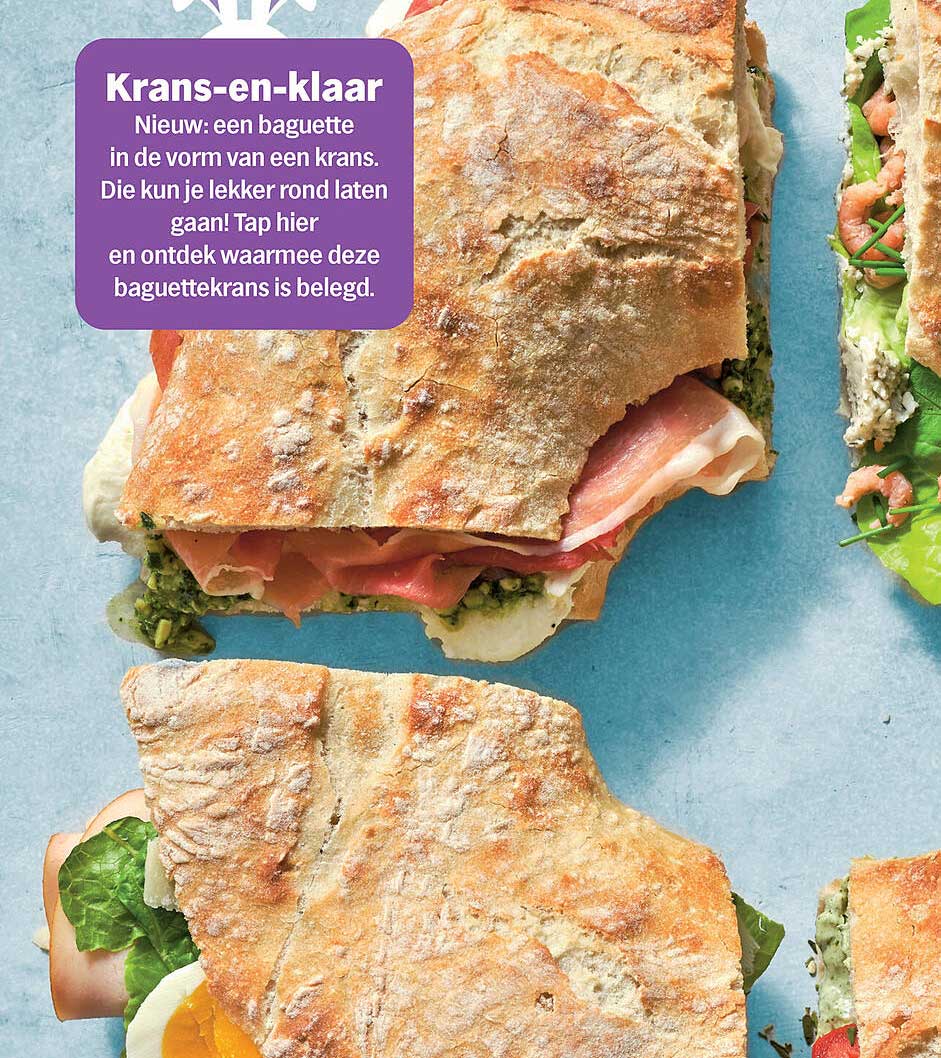 Maak kennis met de nieuwste culinaire sensatie van Albert Heijn: de Krans-en-klaar! Deze innovatieve baguette in de vorm van een krans is perfect voor als je iets bijzonders wilt, zonder hier veel tijd aan kwijt te zijn. Het is niet alleen een lust voor het oog, maar ook voor de smaakpapillen. Of je nu een snelle lunch of een gezellig diner voor vrienden in gedachten hebt, dit broodje is de ideale keuze om indruk te maken.
