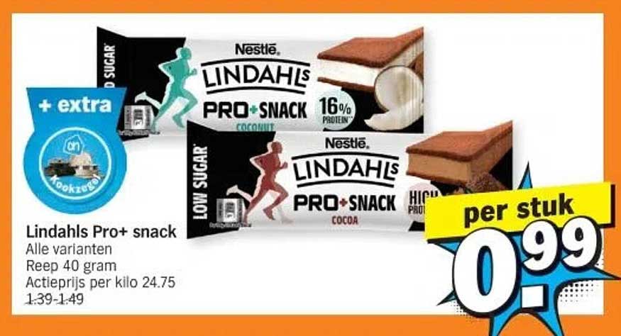 Bekijk de Lindahls Pro+ Snack aanbieding bij Albert Heijn! Deze fantastische aanbieding is nu beschikbaar in de nieuwste Albert Heijn folder. Profiteer van deze kans en bespaar flink op je aankoop.
