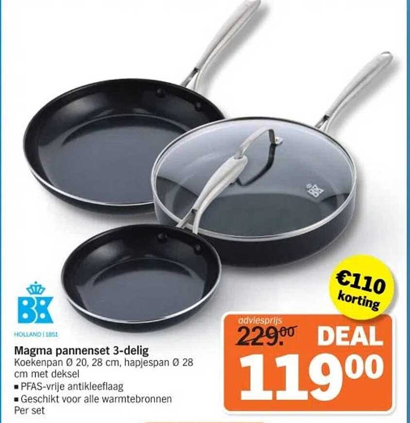 Bekijk de Magma Pannenset 3-Delig aanbieding bij Albert Heijn! Deze fantastische aanbieding is nu beschikbaar in de nieuwste Albert Heijn folder. Profiteer van deze kans en bespaar flink op je aankoop.