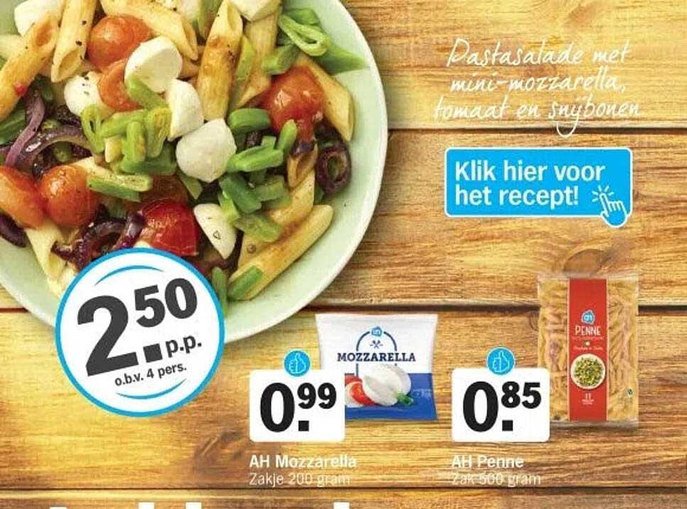 Maak deze zomer onvergetelijk met een heerlijke pasta-salade! Op deze pagina vind je een geweldige aanbieding van Albert Heijn voor een smakelijke combinatie van mini-mozzarella, verse tomaten en knapperige snijbonen. Perfect voor een lichte lunch of als bijgerecht tijdens een gezellige barbecue. Geniet van de frisse, mediterrane smaken die deze salade te bieden heeft.