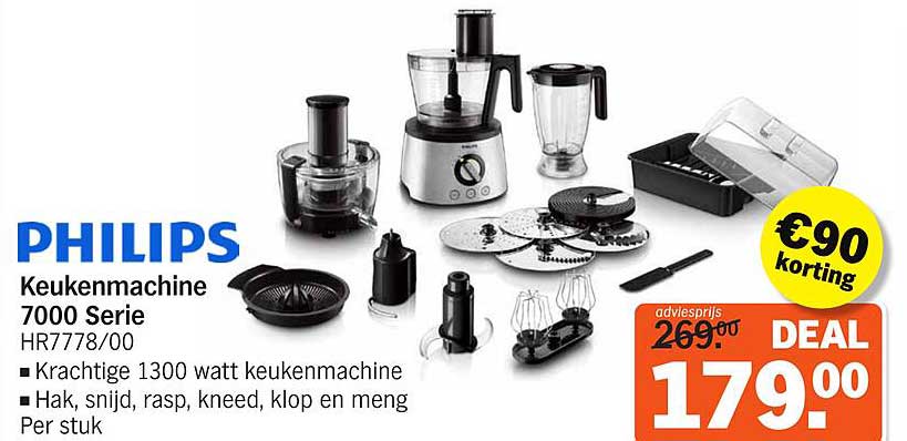 Bekijk de Philips Keukenmachine 7000 Serie Hr7778/00 aanbieding bij Albert Heijn! Deze fantastische aanbieding is nu beschikbaar in de nieuwste Albert Heijn folder. Profiteer van deze kans en bespaar flink op je aankoop.