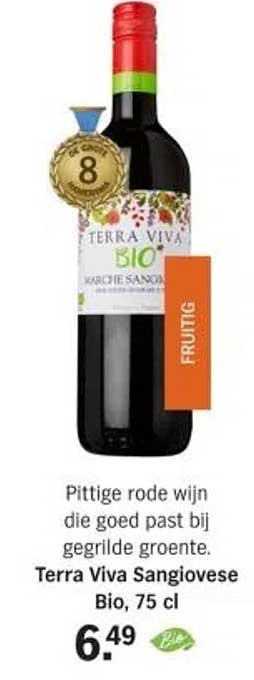 Bekijk de Terra Viva Sangiovese Bio aanbieding bij Albert Heijn! Deze fantastische aanbieding is nu beschikbaar in de nieuwste Albert Heijn folder. Profiteer van deze kans en bespaar flink op je aankoop.