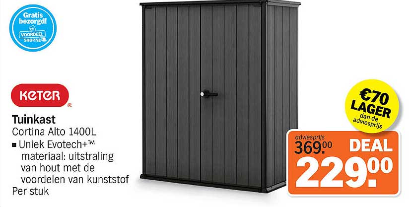 Ben je op zoek naar de perfecte oplossing voor je tuinbenodigdheden? Dan is de Tuinkast Cortina Alto 1400L van Keter precies wat je nodig hebt! Deze aanbieding is niet te missen, omdat je nu een geweldige korting krijgt op een kwaliteitsproduct. Van 14 juli tot en met 20 juli 2025 kun je profiteren van deze deal. De tuinkast is niet alleen stijlvol, maar biedt ook voldoende opbergruimte voor al je tuinaccessoires.