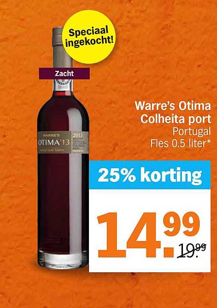 Bekijk nu de Warre's Otima Colheita port aanbieding in de Albert Heijn folder. Deze aanbieding is geldig van 06-10-2025 tot en met 12-10-2025.