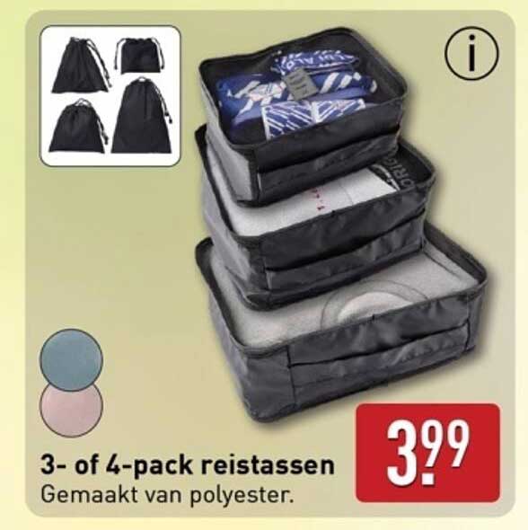 Bekijk nu de 3- of 4-pack reistassen aanbieding in de ALDI folder. Deze aanbieding is geldig van 26-05-2025 tot en met 01-06-2025.