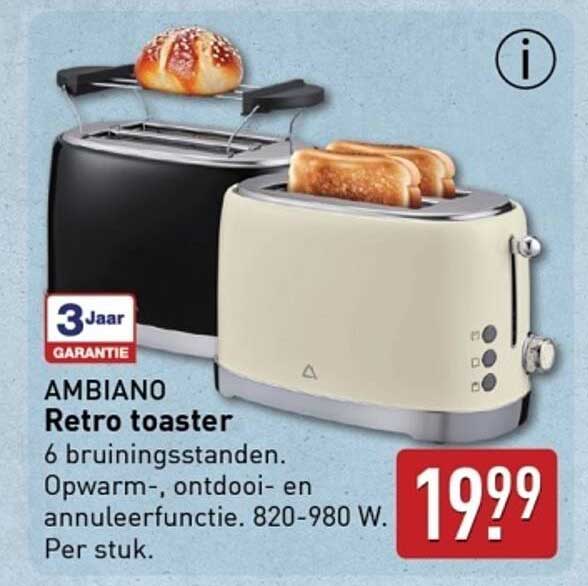 Bekijk de Ambiano Retro Toaster aanbieding bij ALDI! Deze fantastische aanbieding is nu beschikbaar in de nieuwste ALDI folder. Profiteer van deze kans en bespaar flink op je aankoop.