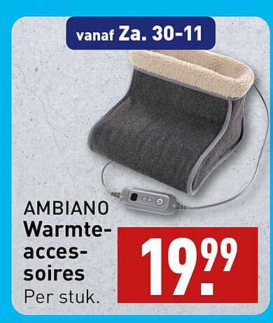 Bekijk nu de AMBIANO Warmte-accessoires aanbieding in de ALDI folder. Deze aanbieding is geldig van 25-11-2024 tot en met 01-12-2024.