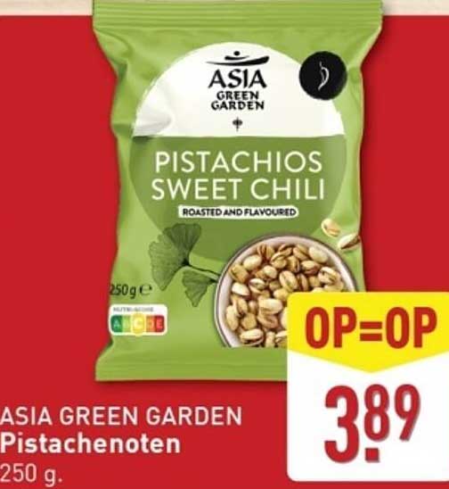 Bekijk nu de ASIA GREEN GARDEN Pistachenoten aanbieding in de ALDI folder. Deze aanbieding is geldig van 13-10-2025 tot en met 19-10-2025.