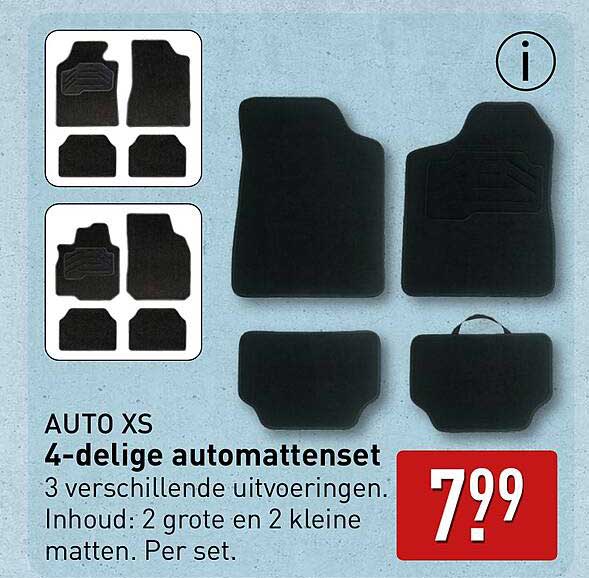 Bekijk nu de AUTO XS 4-delige automattenset aanbieding in de ALDI folder. Deze aanbieding is geldig van 10-03-2025 tot en met 16-03-2025.