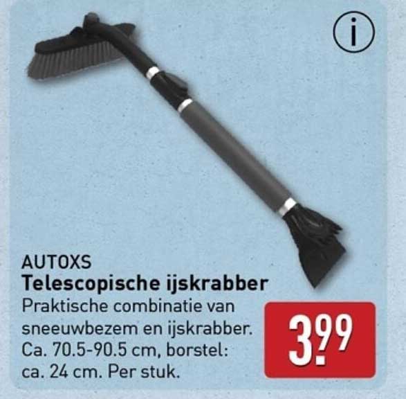 Bekijk de Autoxs Telecopische Ijskrabber aanbieding bij ALDI! Deze fantastische aanbieding is nu beschikbaar in de nieuwste ALDI folder. Profiteer van deze kans en bespaar flink op je aankoop.