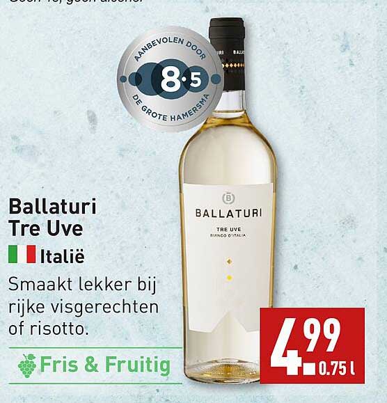 Bekijk de Ballaturi Tre Uve aanbieding bij ALDI! Deze fantastische aanbieding is nu beschikbaar in de nieuwste ALDI folder. Profiteer van deze kans en bespaar flink op je aankoop.