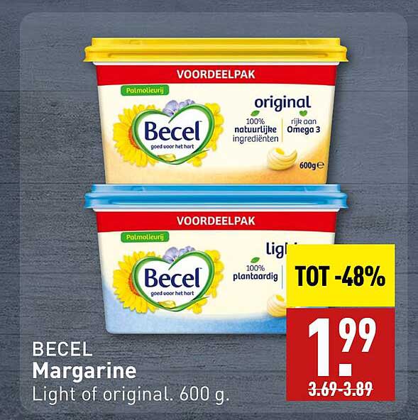 Bekijk de Becel Margarine aanbieding bij ALDI! Deze fantastische aanbieding is nu beschikbaar in de nieuwste ALDI folder. Profiteer van deze kans en bespaar flink op je aankoop.