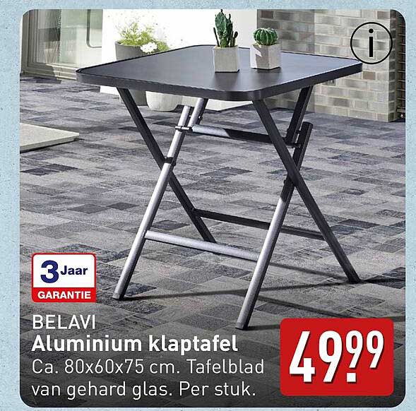 Bekijk nu de BELAVI Aluminium klaptafel aanbieding in de ALDI folder. Deze aanbieding is geldig van 31-03-2025 tot en met 06-04-2025.