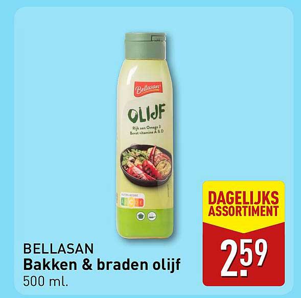 Bekijk nu de BELLASAN Bakken & braden olijf aanbieding in de ALDI folder. Deze aanbieding is geldig van 20-01-2025 tot en met 26-01-2025.