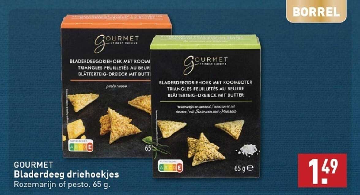 Ontdek de geweldige Bladerdeeg Driehoekjes Met Roomboter aanbieding in de nieuwste ALDI folder. Naast deze aanbieding vind je nog veel meer aantrekkelijke kortingen. Je kunt de Bladerdeeg Driehoekjes Met Roomboter eenvoudig online bestellen via de ALDI website of kopen in een winkel bij jou in de buurt.