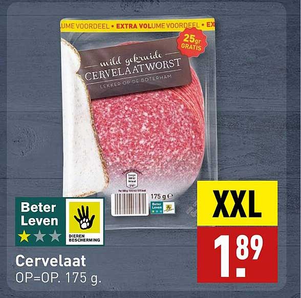 Wil je direct op de hoogte zijn zodra de Cervelaatworst in de aanbieding is? Meld je aan voor onze aanbiedingen-alert. Zo krijg je een melding zodra het product tegen een voordelige prijs beschikbaar is.