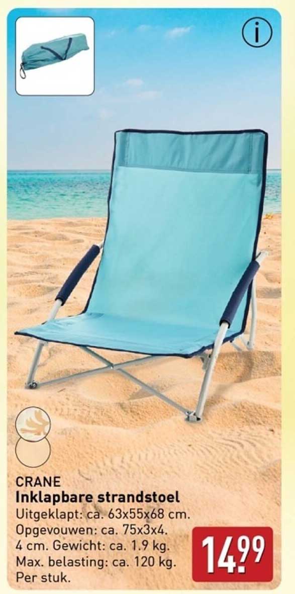Bekijk nu de CRANE Inklapbare strandstoel aanbieding in de ALDI folder. Deze aanbieding is geldig van 10-06-2025 tot en met 15-06-2025.