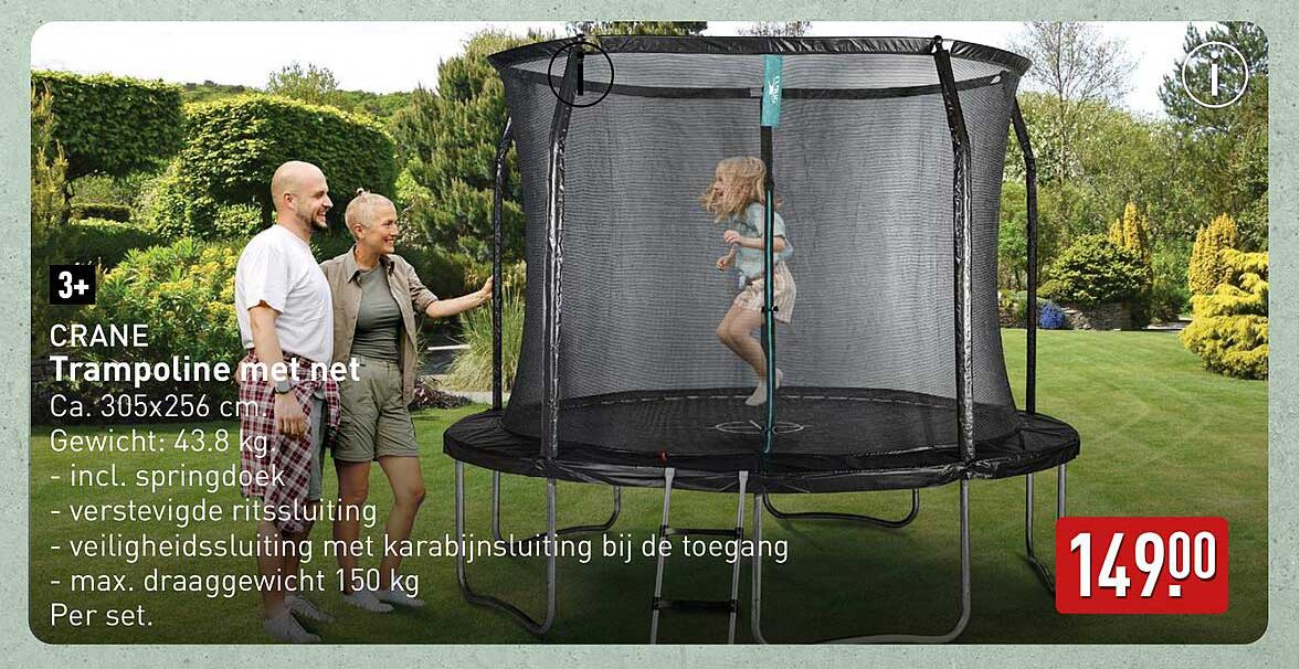 Bekijk nu de CRANE Trampoline met net aanbieding in de ALDI folder. Deze aanbieding is geldig van 14-04-2025 tot en met 20-04-2025.