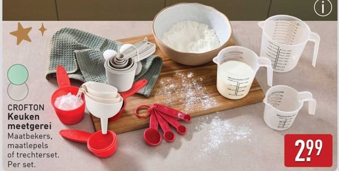 Wat is er handiger in de keuken dan goed meetgerei? Met de CROFTON keuken meetgerei set, nu verkrijgbaar bij ALDI, wordt elke kook- of bakervaring gemakkelijker en leuker. Deze set is perfect voor zowel ervaren koks als beginners. Of je nu een heerlijke taart wilt bakken of een smakelijke maaltijd wilt bereiden, deze maatbekers, maatlepels en trechters maken het precisiewerk een stuk eenvoudiger. Met een geldigheid van 22 oktober tot en met 26 oktober 2025 is dit het ideale moment om je keukenuitrusting aan te vullen!