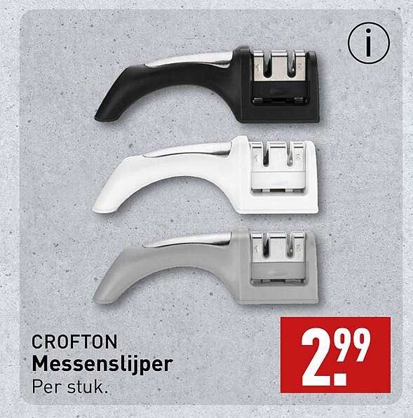 Ontdek de geweldige Crofton Messenslijper aanbieding in de nieuwste ALDI folder. Naast deze aanbieding vind je nog veel meer aantrekkelijke kortingen. Je kunt de Crofton Messenslijper eenvoudig online bestellen via de ALDI website of kopen in een winkel bij jou in de buurt.