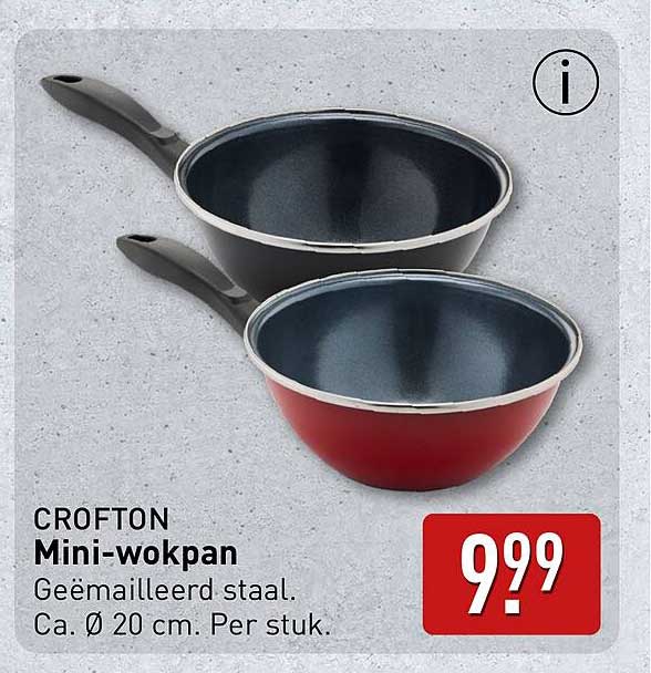 Bekijk de Crofton Mini-Wokpan aanbieding bij ALDI! Deze fantastische aanbieding is nu beschikbaar in de nieuwste ALDI folder. Profiteer van deze kans en bespaar flink op je aankoop.
