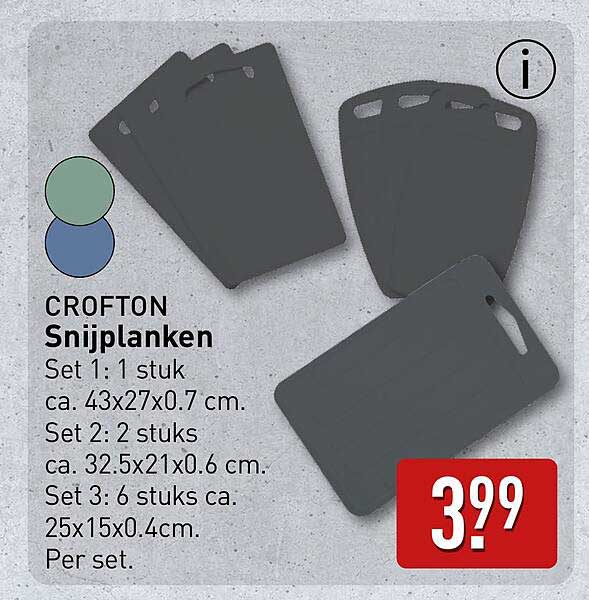 Bekijk nu de CROFTON Snijplanken aanbieding in de ALDI folder. Deze aanbieding is geldig van 07-04-2025 tot en met 13-04-2025.