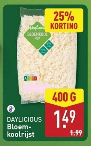 Bekijk nu de DAYLICIOUS Bloemkoolrijst aanbieding in de ALDI folder. Deze aanbieding is geldig van 29-09-2025 tot en met 05-10-2025.