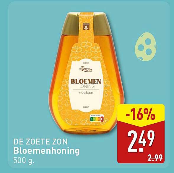 Bekijk nu de DE ZOETE ZON Bloemenhoning 500 g. aanbieding in de ALDI folder. Deze aanbieding is geldig van 24-03-2025 tot en met 30-03-2025.