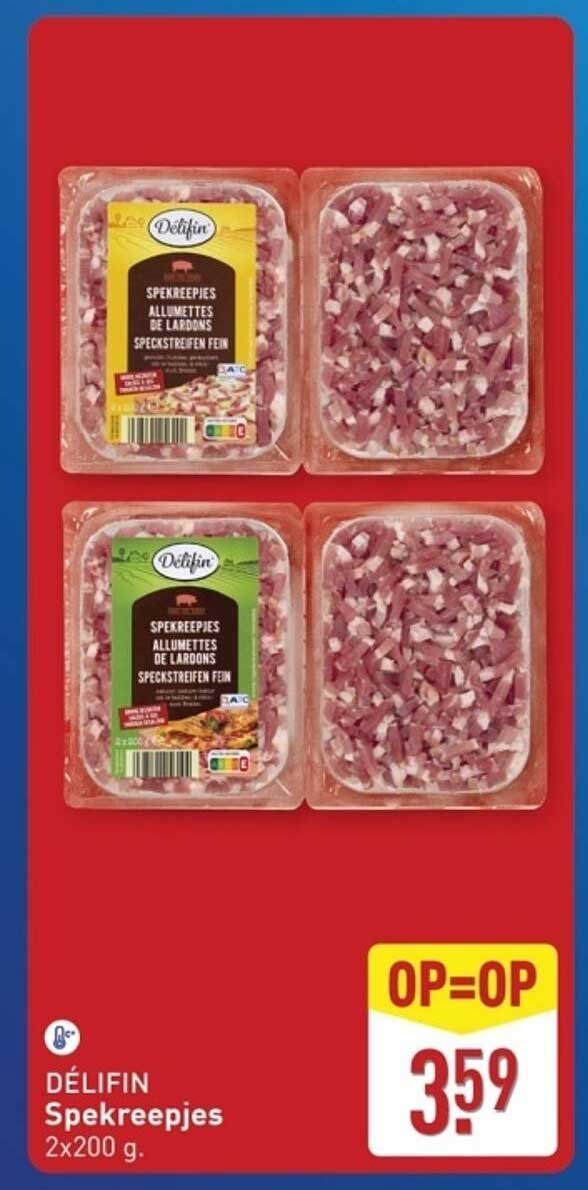 Bekijk nu de DÉLIFIN Spekreepjes 2x200 g aanbieding in de ALDI folder. Deze aanbieding is geldig van 06-10-2025 tot en met 12-10-2025.