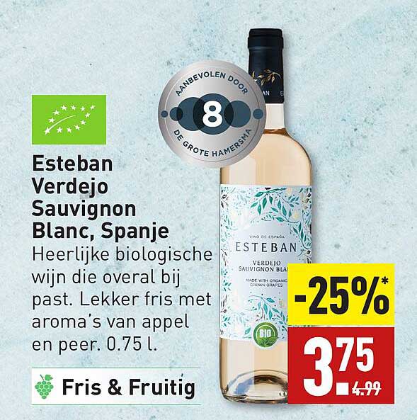 Bekijk nu de Esteban Verdejo Sauvignon Blanc, Spanje aanbieding in de ALDI folder. Deze aanbieding is geldig van 09-09-2024 tot en met 15-09-2024.