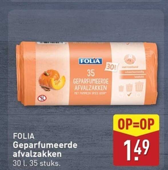 Bekijk nu de FOLIA Geparfumeerde afvalzakken aanbieding in de ALDI folder. Deze aanbieding is geldig van 13-10-2025 tot en met 19-10-2025.