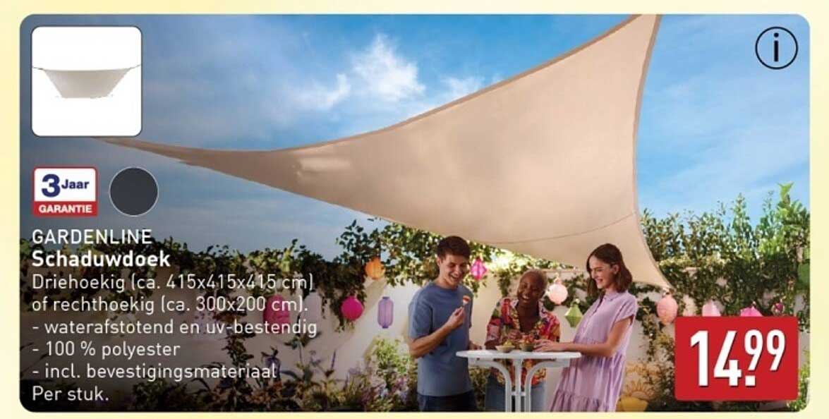 Bekijk nu de GARDENLINE Schaduwdoek aanbieding in de ALDI folder. Deze aanbieding is geldig van 02-06-2025 tot en met 09-06-2025.