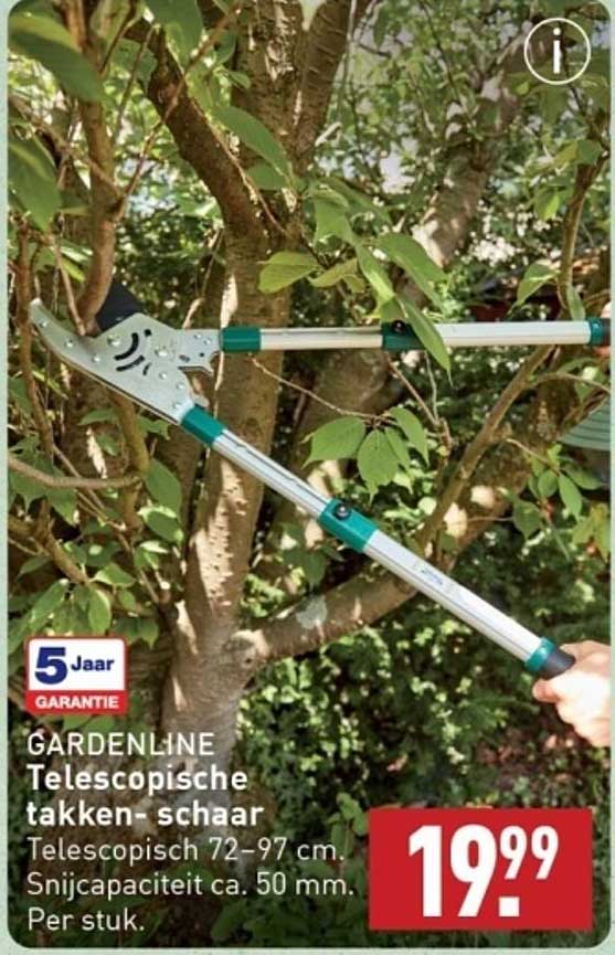 Bekijk de Gardenline Telescopische Takken-Schaaar aanbieding bij ALDI! Deze fantastische aanbieding is nu beschikbaar in de nieuwste ALDI folder. Profiteer van deze kans en bespaar flink op je aankoop.